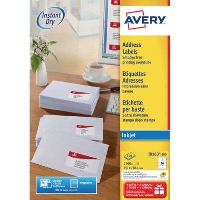 Avery L7163-250 Labels, 99.1 x 38.1 mm 14 Labels Per Sheet ... - Lyreco Avery L7163-250 Labels, 99.1 x 38.1 mm 14 Labels Per Sheet, 3500 Labels Per Pack Product Code: 3.050.684 UltraGrip 3D diamond shaped microdot pattern on the blue bars, at the top and bottom of the sheet to ensure perfect print alignment JamFREE printing - special edges on the label sheet ensures no adhesive residue is left on your printer